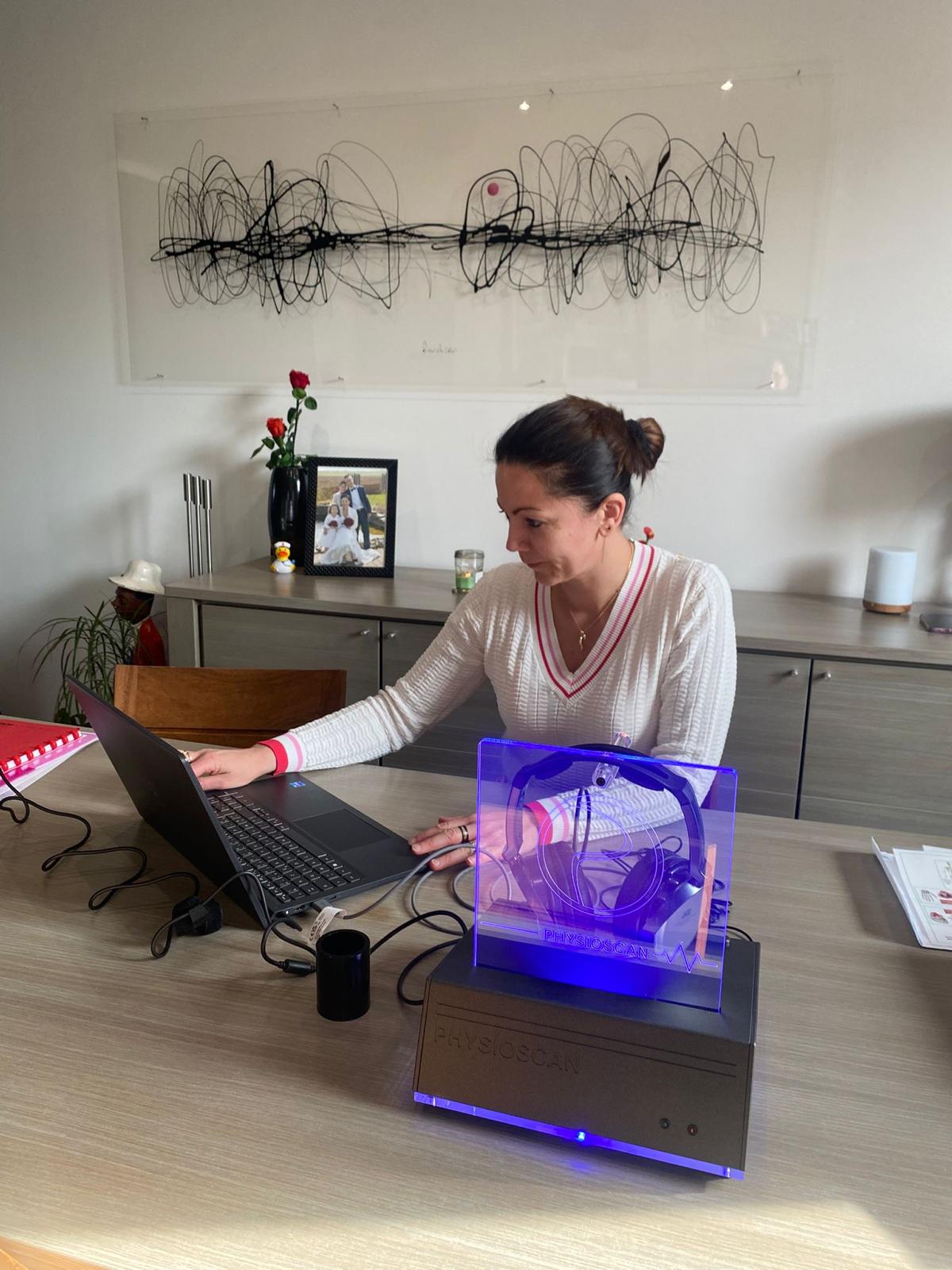 Formée à la nutrition cellulaire, au drainage lymphatique et aux techniques bioénergétiques, elle intègre aujourd'hui le Physioscan à chaque suivi — une technologie d'analyse qui lui permet d'aller là où les bilans classiques s'arrêtent.